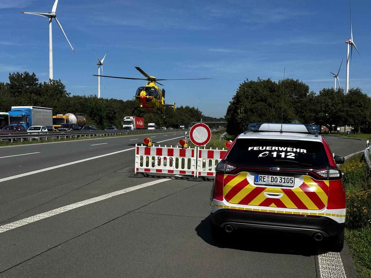 Rettungshubschrauber auf A31 bei Dorsten-Lembeck im Einsatz