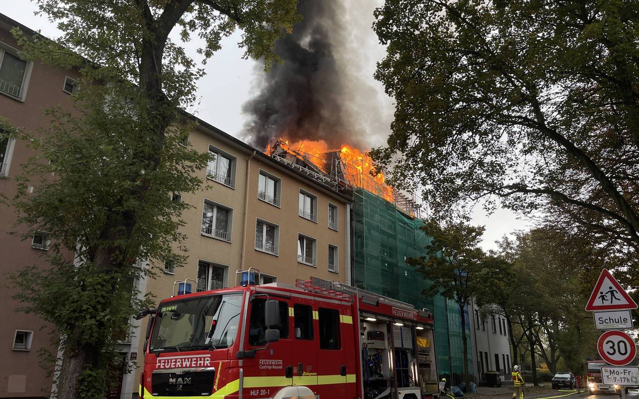 Dachstuhl eines Wohnhauses in Castrop-Rauxel brennt
