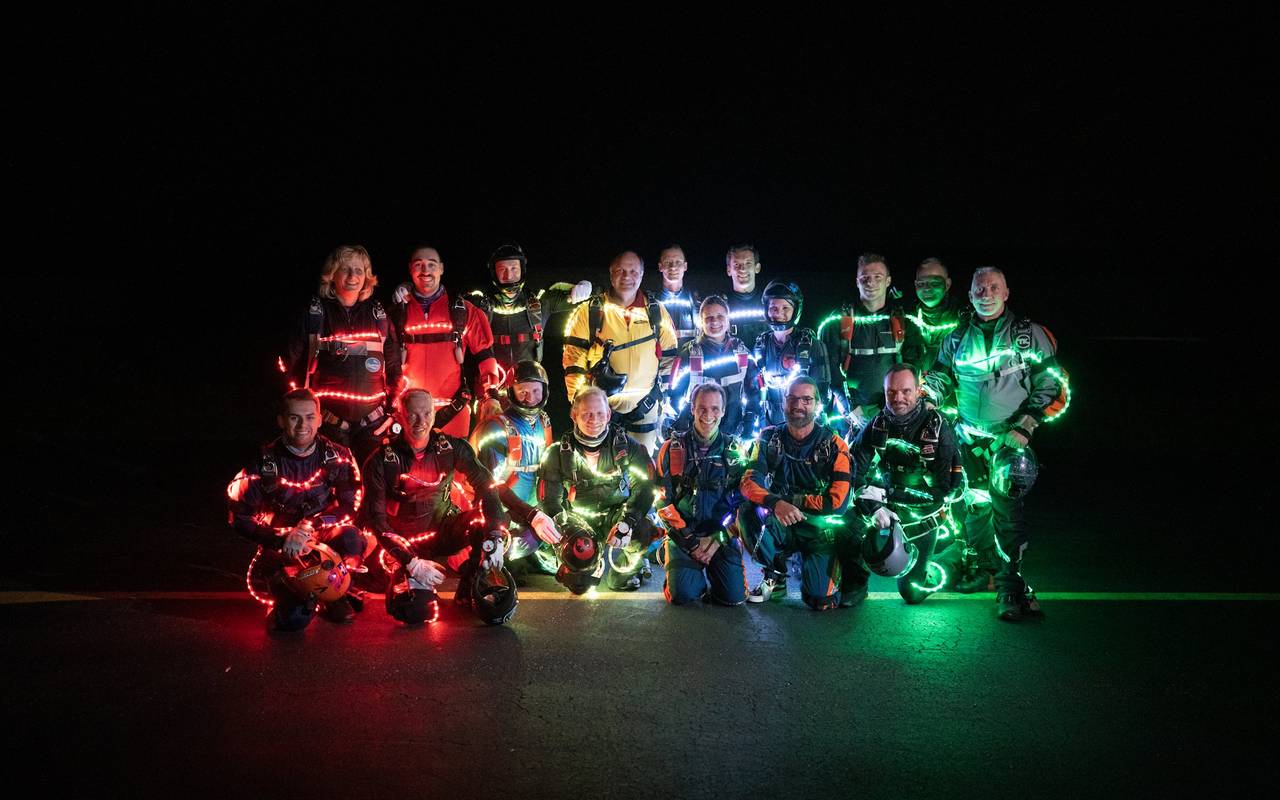 Im zweiten Anlauf hat es geklappt: Der Verein für Fallschirmsport Marl hat den Rekord geknackt für die meisten Formationen am Nachthimmel.