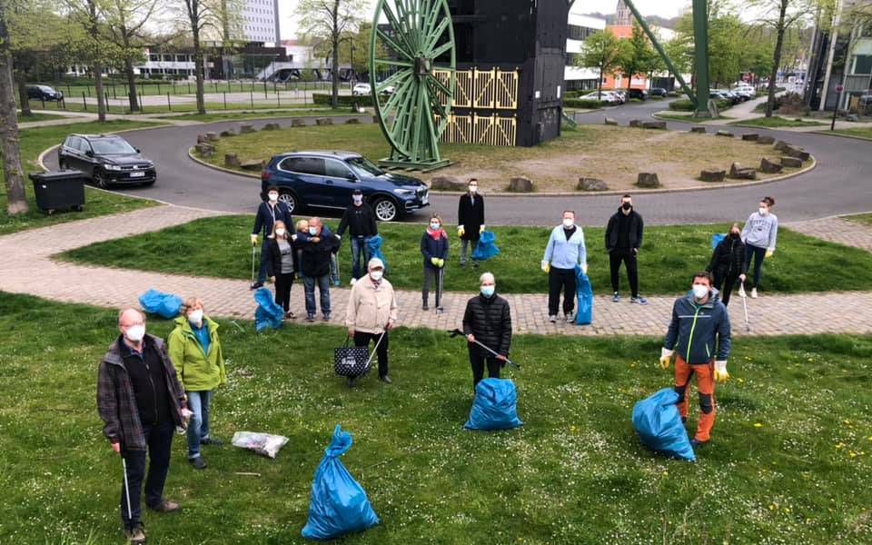 Eine Plogging-Gruppe hat den Erin-Park in Castrop-Rauxel aufgeräumt. "Plogging" ist eine Mischung aus Joggen und Müll aufsammeln.