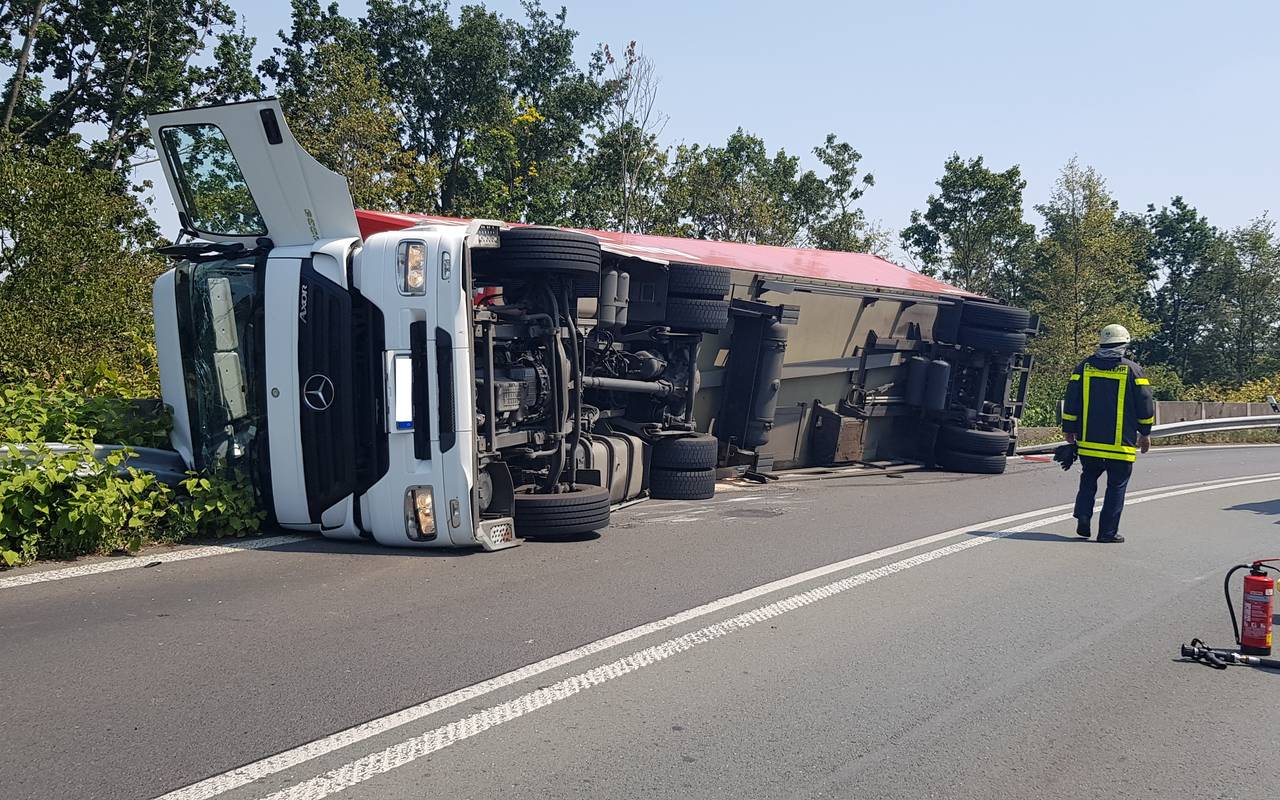 LKW umgekippt: A2-Anschlusstelle RE-Süd gesperrt