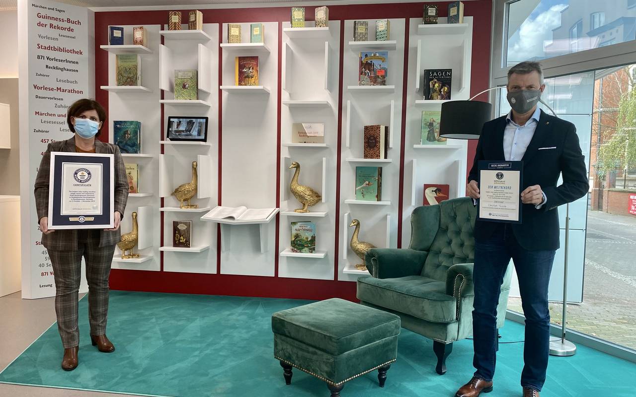 In der Stadtbibliothek in der Altstadt erinnert eine Bücherwand mit integriertem Bildschirm und der dunkelgrüne Sessel an den Erfolg. Auf dem Bildschirm werden Videos von dem Event gezeigt, außerdem sind in einem Erinnerungsbuch die Namen aller Vorleserinnen und Vorleser vermerkt. Am 3. November 2019 wurde in Recklinghausen der Weltrekord im Dauervorlesen aufgestellt - 457 Stunden, 59 Minuten und 40 Sekunden lang wurden ununterbrochen, Tag und Nacht, Märchen und Sagen vorgetragen.