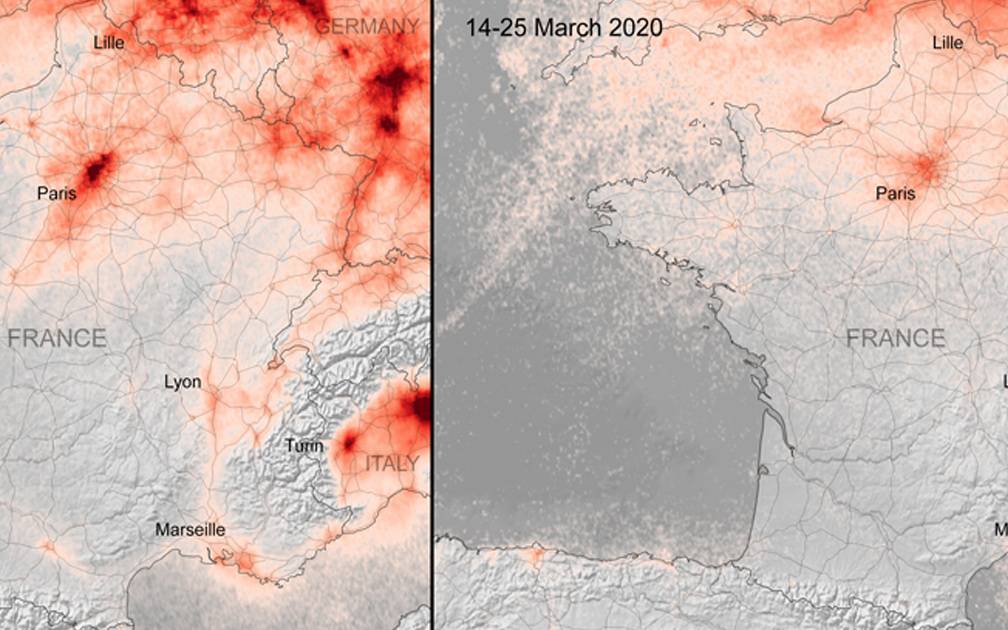 Dies sei vor allem in den Metropolen Paris, Madrid und Mailand deutlich geworden. Die Satellitenbilder, die die ESA zur Verfügung gestellt hat, belegen das.