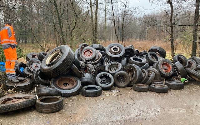 Tonnenweise illegal entsorgte alte Reifen